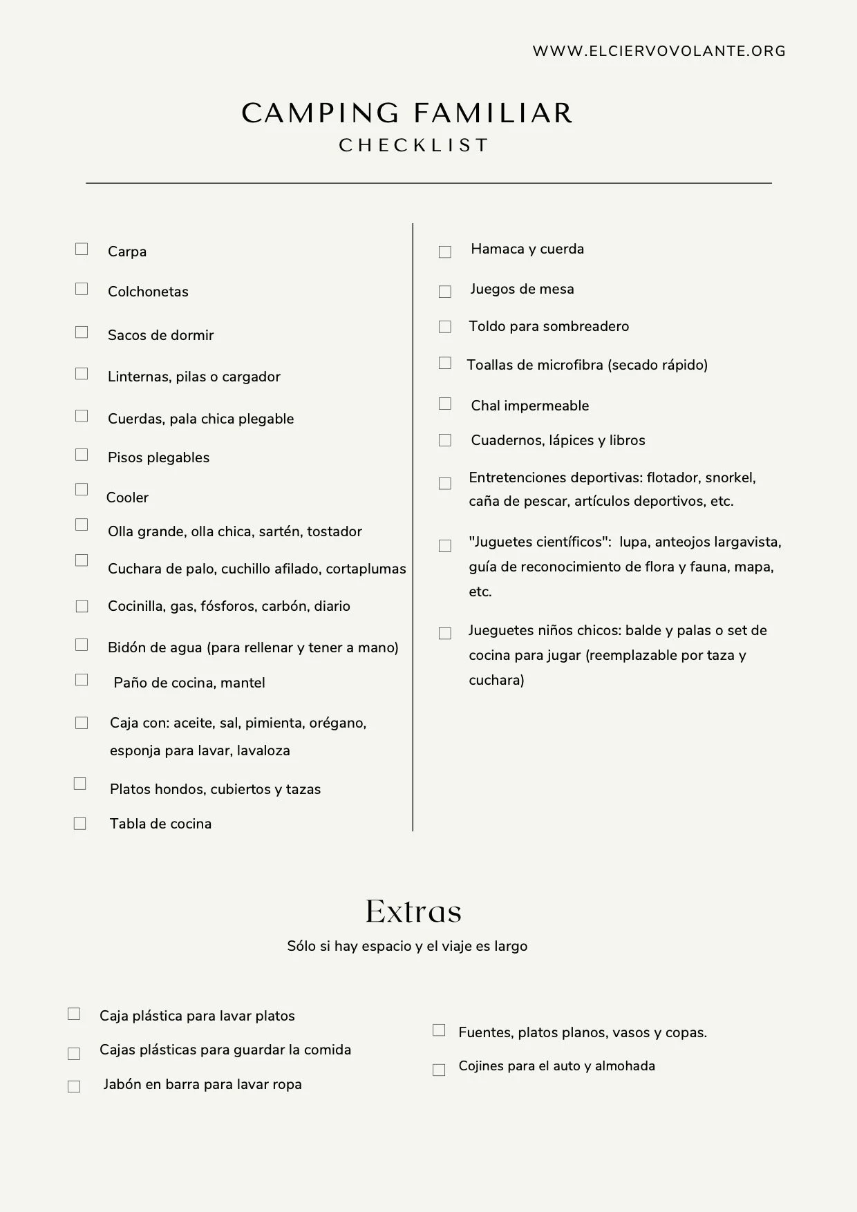 ¿Para qué complicarse si alguien ya hizo el trabajo por tí? Sólo imprimir y chequear, así de fácil esta lista para estar siempre preparado para la aventura.